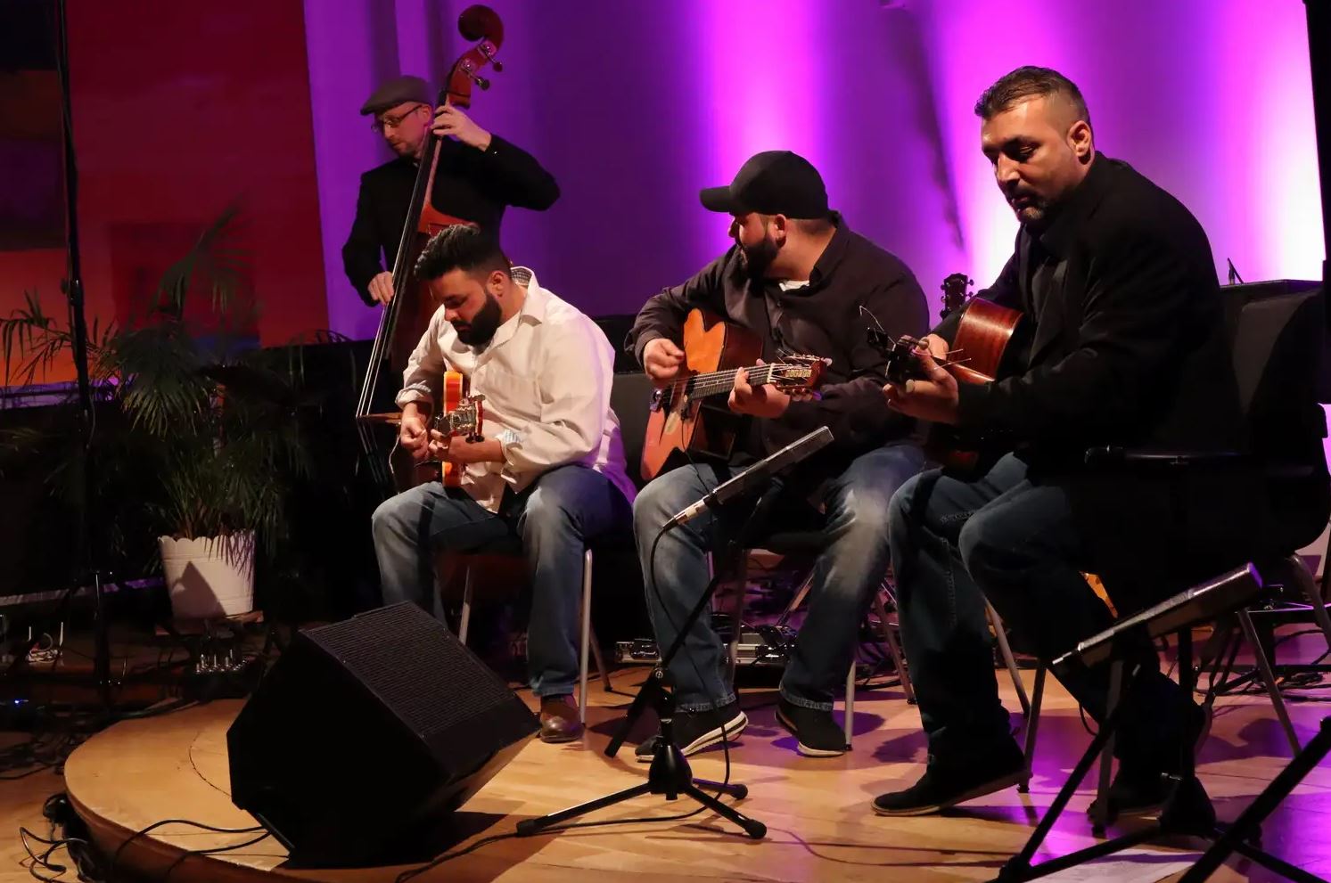 Das Quintett Django Forever hat sich Ende 2018 gegründet und spielt Swing- und Gypsy-Jazz-Kompositionen mit großer Spielfreude und in munterem Tempo. Die drei Brüder Jeffrey, Mirano und Marcel Weiss haben früh gelernt, Gitarre im Stile Django Reinhardts zu spielen und sind bereits mit Größen wie Stochelo Rosenberg, Wawau Adler oder Giovanni Weiss aufgetreten. Benjamin Wiegand weiterlesen